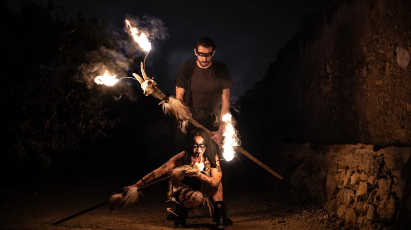 Un ritual sincrònic on la seducció, plaer i risc són la dramatúrgia de l'espectacle. Des de temps immemorials, els humans hem fet servir la música i la natura per sobreviure, crear, curar, gaudir i celebrar. Quan ajuntem passat i present, quan la percussió i el foc es retroben i s'uneixen, creen una simfonia visual. Un espectacle on artistes, objectes i foc s'ajunten per transportar el públic a reconnectar amb el seu ésser més primitiu. Un lloc on músics, malabaristes i manipuladors uneixen les seves habilitats per crear un espectacle ple de força gràcies a les maces, hulahoops, espases, ventalls, carioques i ales de foc. Un espai màgic creat gràcies al foc de color, espurnes i tira focs.